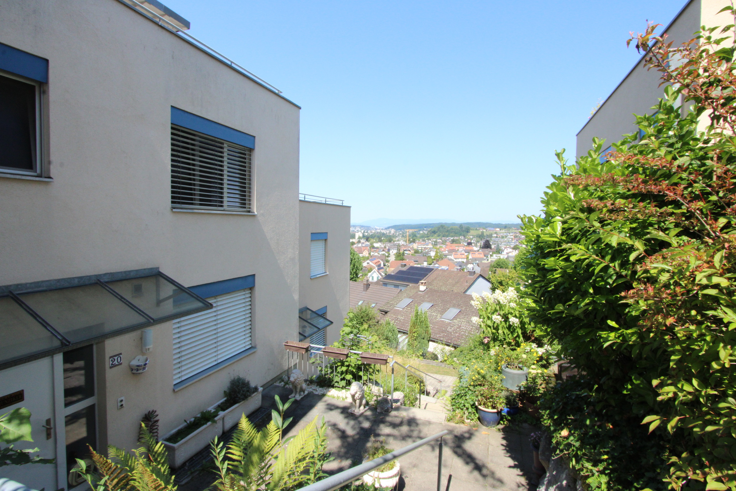 Im Erdgeschoss erwarten Sie ein grosszügiges Entrée, ein separates WC sowie ein lichtdurchfluteter Wohn-/Essbereich mit Küche und Zugang zum Sitzplatz.