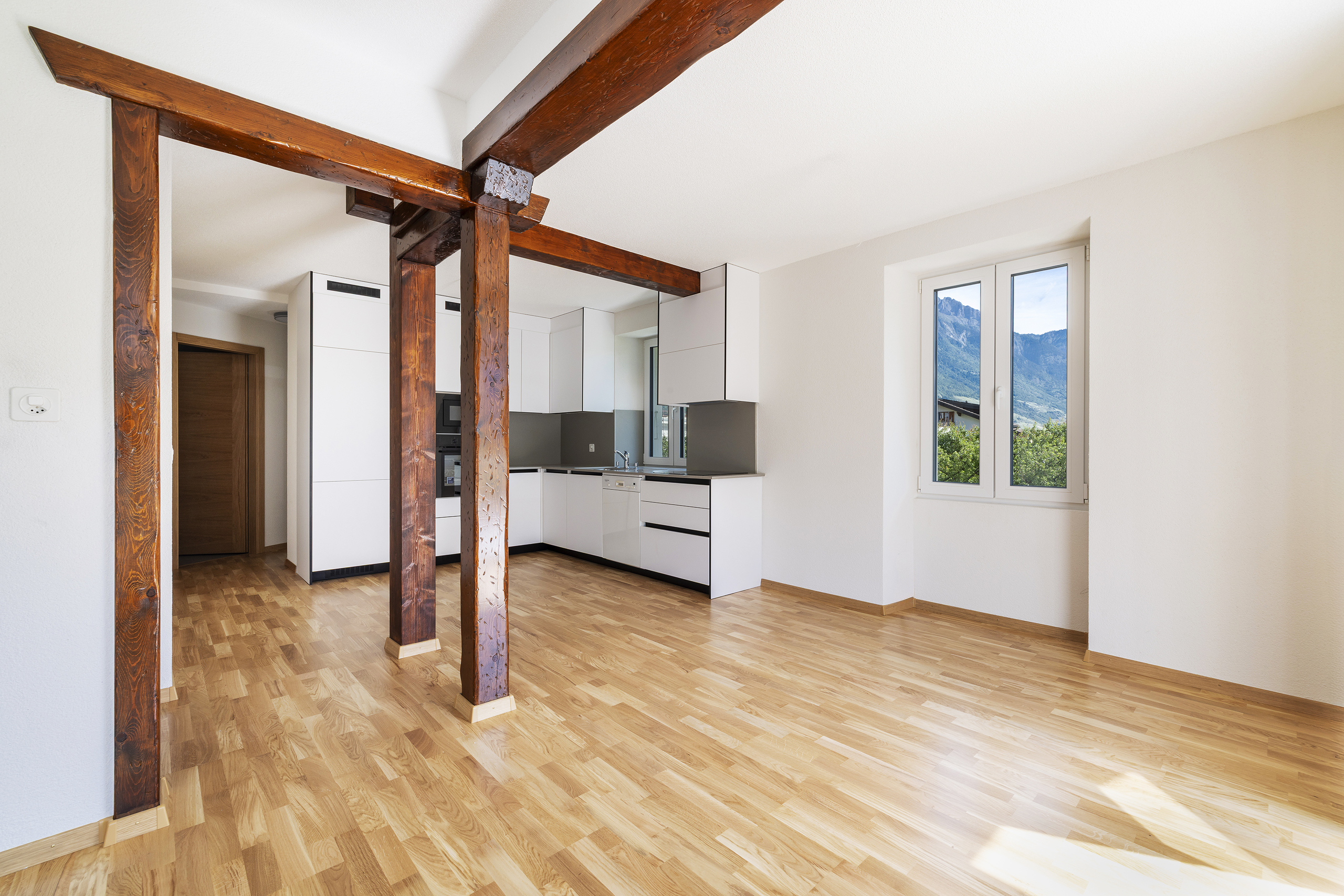 La maison, à l’architecture atypique, alliant le côté rustique au moderne a été rénovée de “fond en combles” ; des panneaux solaires complètent l’objet pour être au maximum autonome au niveau énergétique (environ 10’000 kw/heures); les charges sont également diminuées grâce à ces derniers.