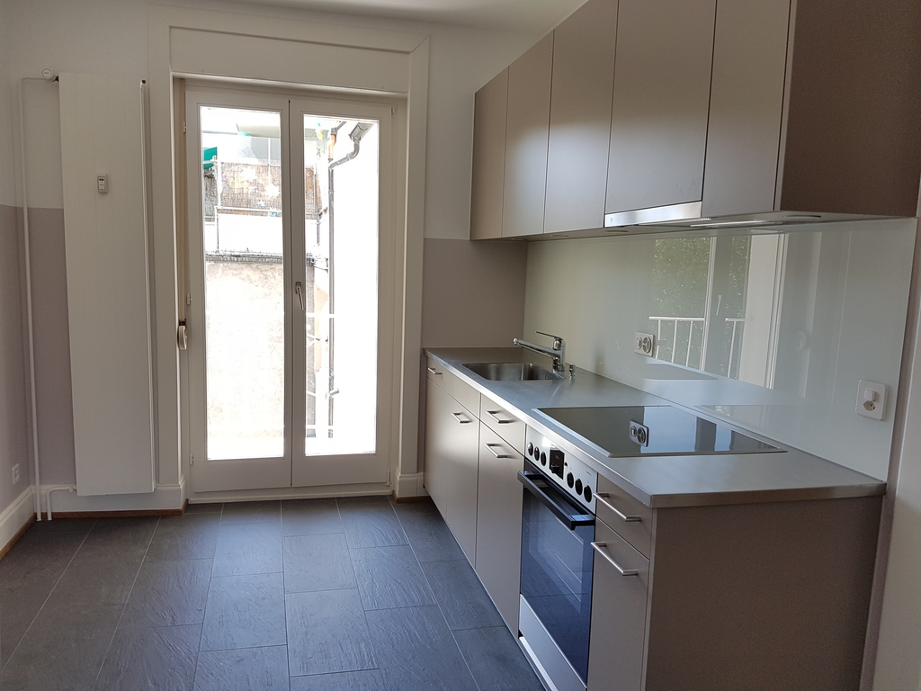 – neue und moderne Einbauküche mit hochwertigen V-Zug Küchengeräten (Glaskeramikherd, Backofen, Geschirrspüler, Kühlschrank)