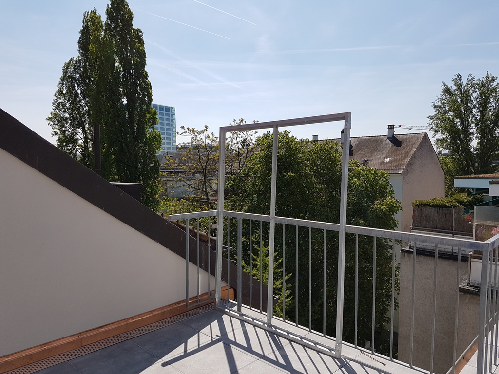 – grosse Dachterrasse und kleiner separater Balkon, Blick ins Grüne, auf ruhigen Hinterhof ausgerichtet