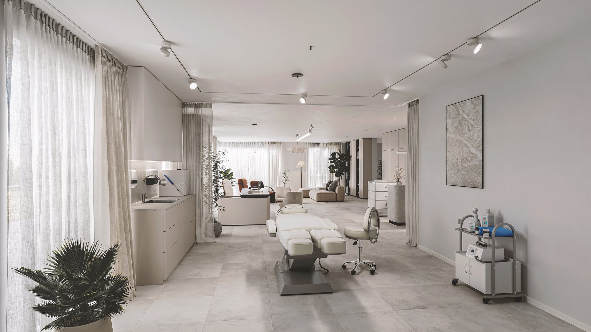 Cette surface bénéficie d’une luminosité optimale avec un espace de travail de 78.55 m2, un espace à manger de 24 m2, d’un vestibule ainsi que d’un wc.