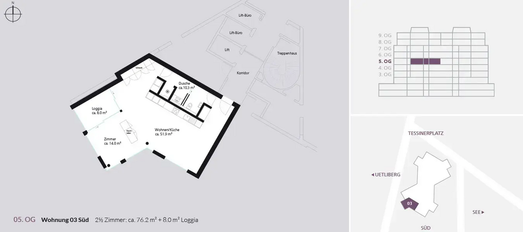 Die 76.20 m2 Wohnfläche überzeugen durch einen hohen Ausbaustandard und hochwertige Materialisierung. Weiter bietet die Wohnung durch eine