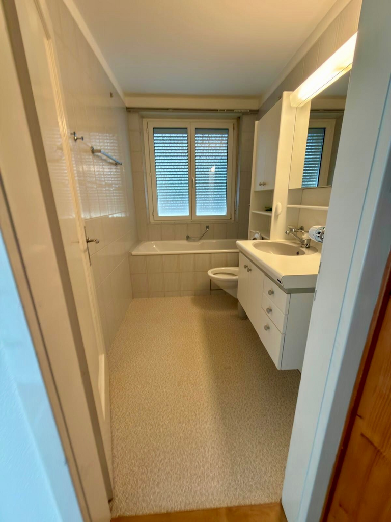 – Badezimmer mit Badewanne, Lavabo, WC und Einbauschrank