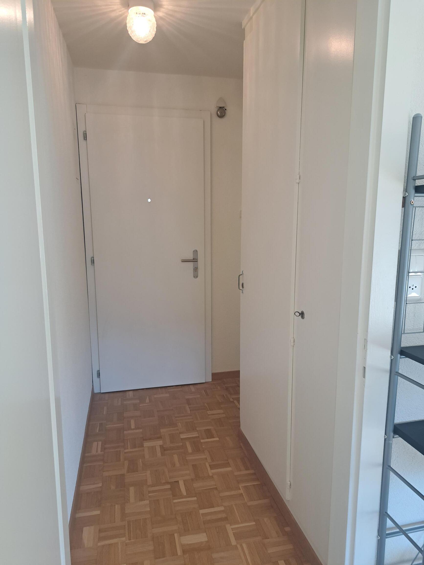 Joli studio lumineux situé dans un quartier calme à deux pas du bord du lac offrant une cuisinette équipée ouverte sur une pièce de vie lumineuse, un hall avec armoires murales, une salle de douche/WC et une cave.