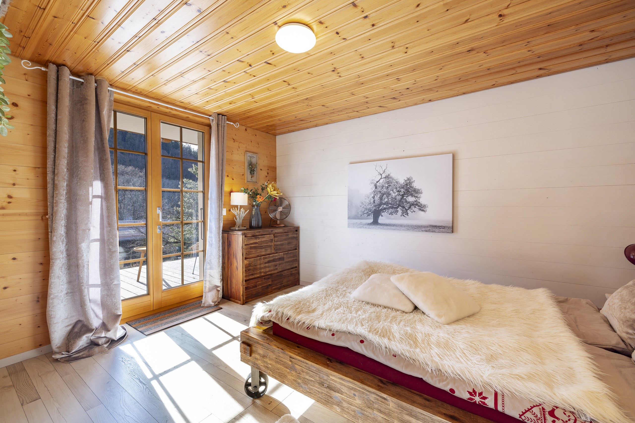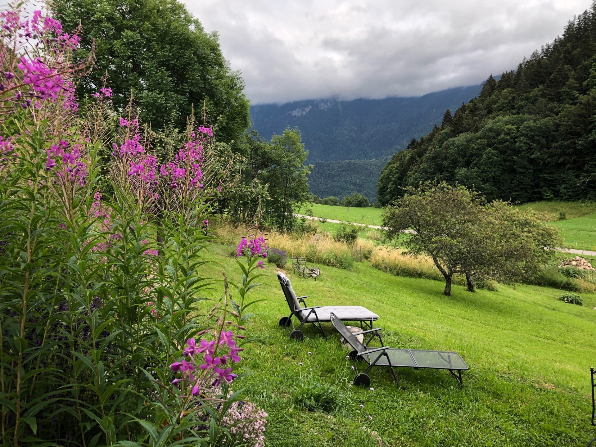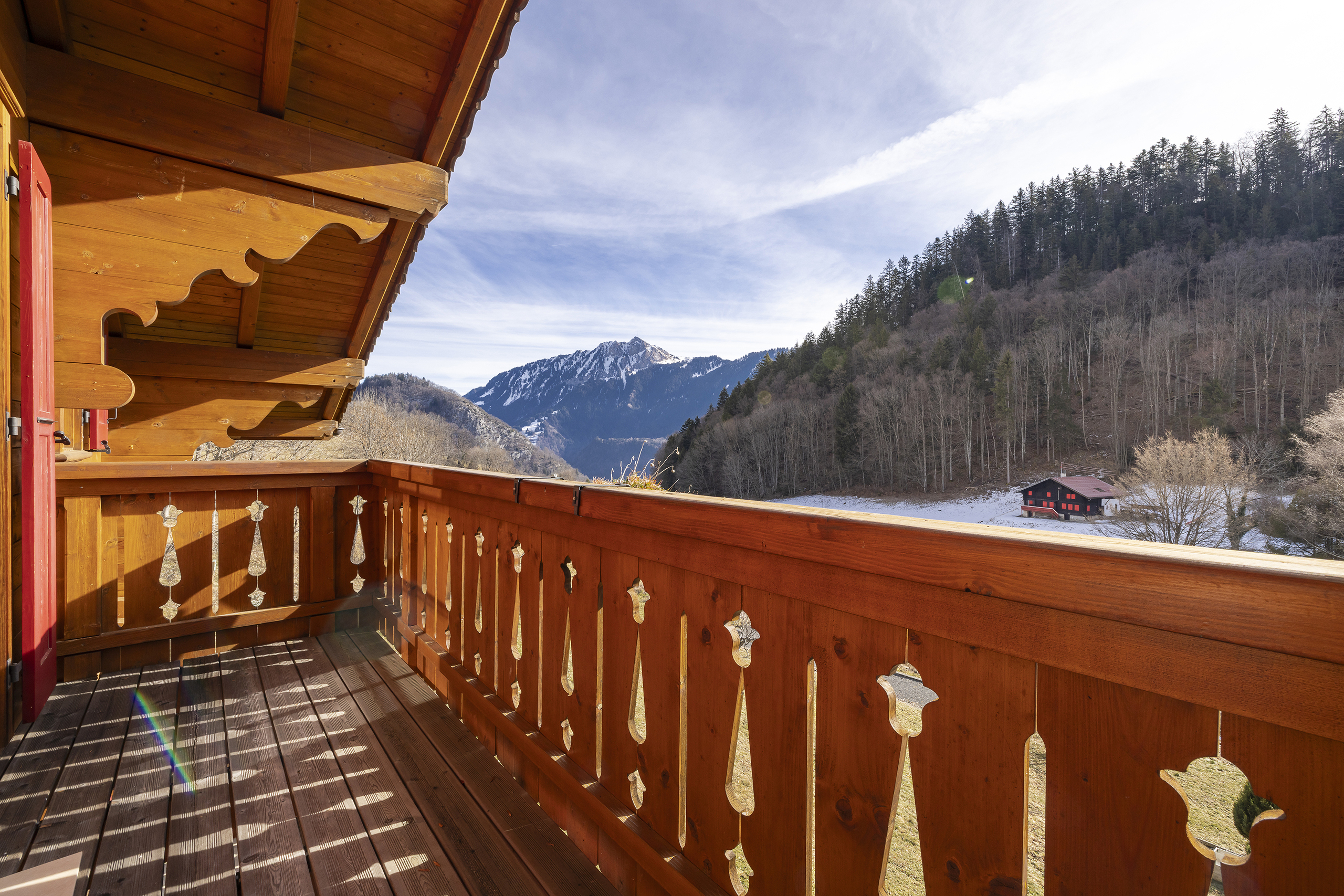 Niché à 1000m d’altitude et entouré d’un verger, le chalet est situé au milieu d’un écrin de verdure dans le petit hameau de Veyges, tout proche de Leysin. Il offre ainsi une vue magnifique sur les montagnes et les champs avoisinants sans oublier le cadre chaleureux et une ambiance champêtre.
