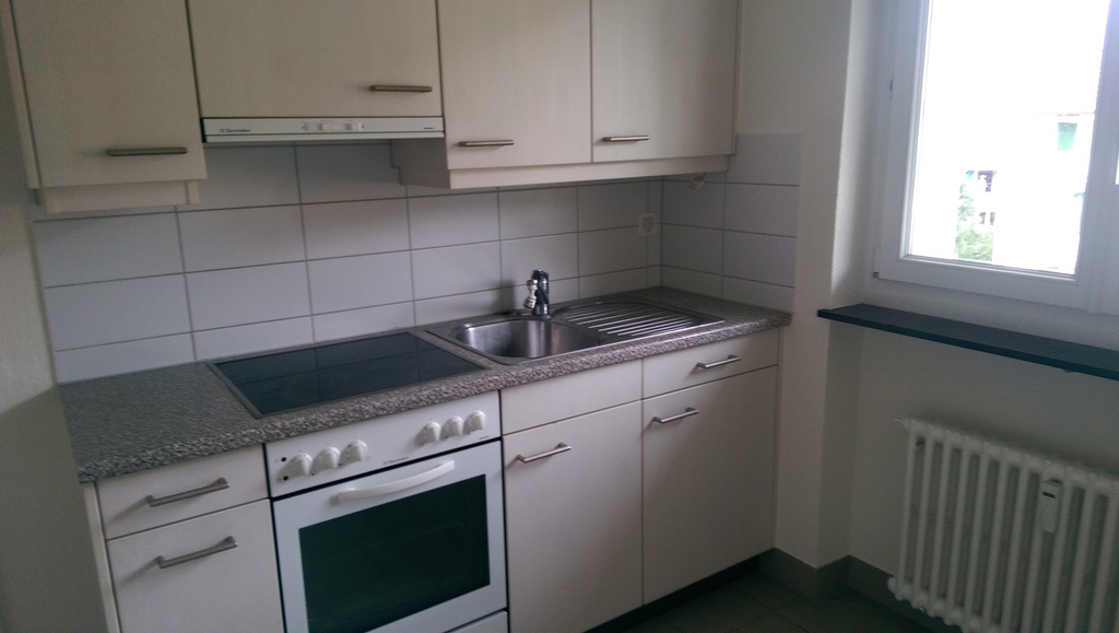 – Küche, Schlafzimmer und Entrée mit Novilonboden