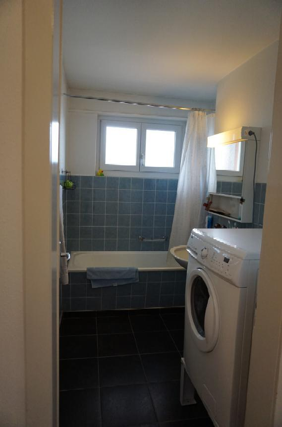 - Badezimmer mit Badewanne, WC, Lavabo und Spiegelschrank