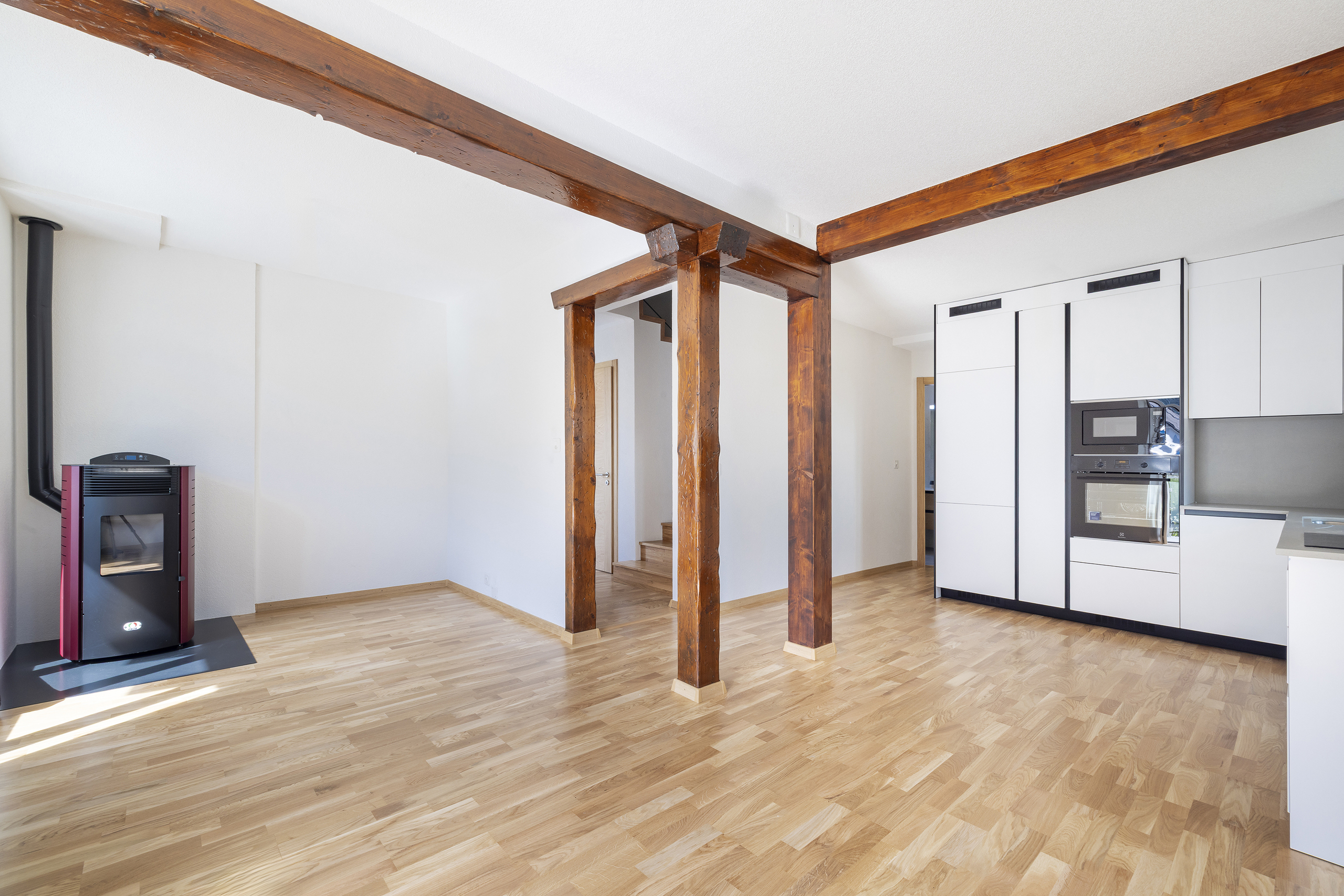 La maison, à l’architecture atypique, alliant le côté rustique au moderne a été rénovée de « fond en combles » ; des panneaux solaires complètent l’objet pour être au maximum autonome au niveau énergétique (environ 10’000 kw/heures); les charges sont également diminuées grâce à ces derniers.