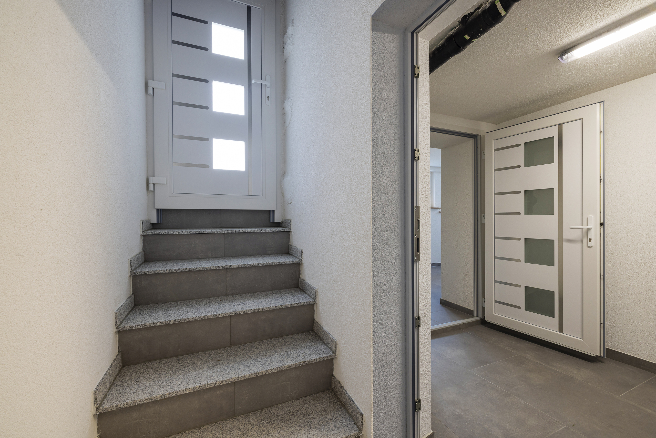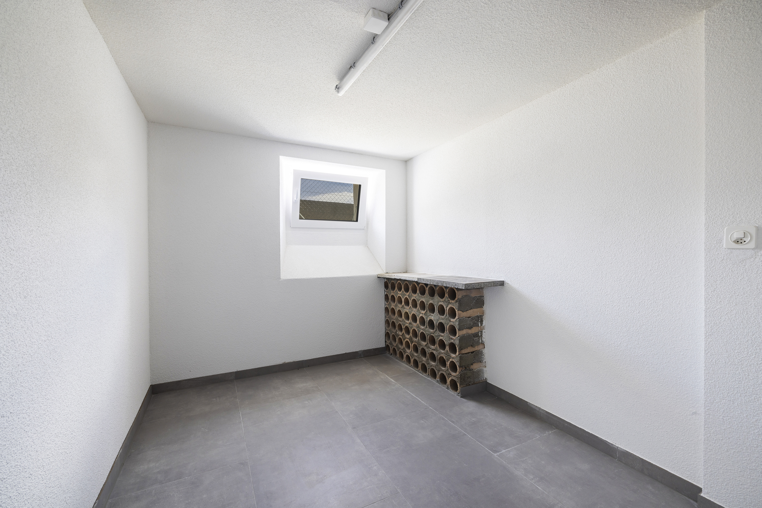 - Sous-sol: Hall de distribution, 1 bureau + WC-visiteurs, disponible, atelier, cave, buanderie.