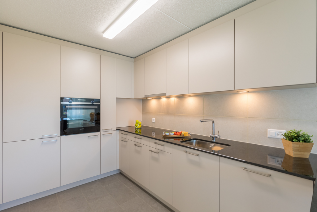 - neue moderne Küche mit viel Stauraum, Geschirrspüler und Backofen auf Bedienhöhe