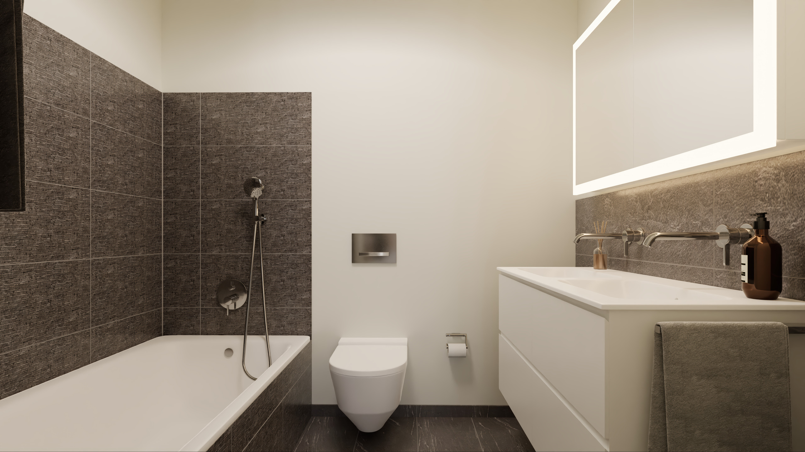 - Im Hauptschlafzimmer haben Sie ein Bad en Suite mit Badewanne, Doppellavabo und Toilette