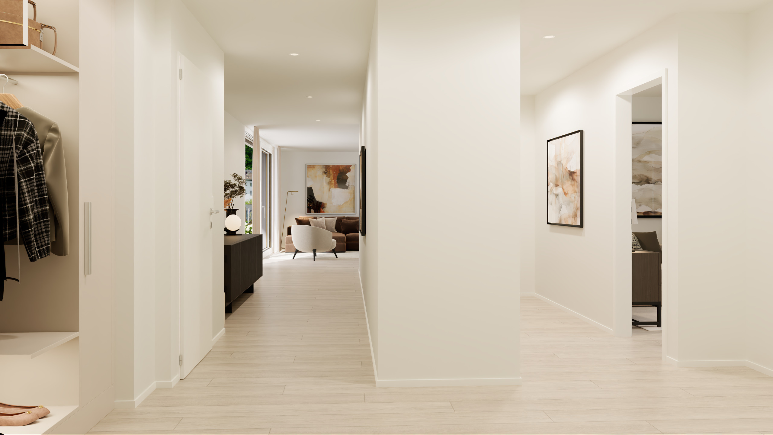 Hier entstehen 13 Wohnungen mit spannenden Grundrissen, von der Erdgeschosswohnung mit Garten bis zur Attikawohnung mit zwei Terrassen. Auch Nebenräume, ein Hobbyraum sowie 12 Einstellhallenplätze können erworben werden. Bezugsbereit sind die Wohnungen ca. im Frühling 2027.