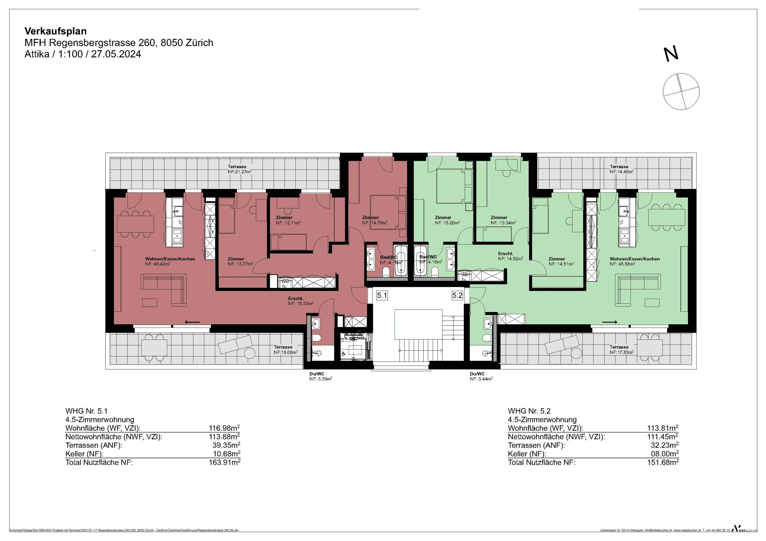 Gerne stellen wir Ihnen die 4.5 Zimmer-Attikawohnungen (4.OG / 5.2) vor: