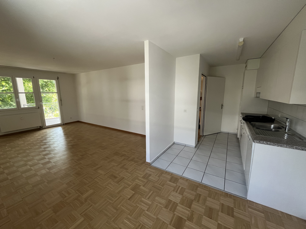 Die Wohnung befindet sich in ruhiger und dennoch zentraler Umgebung. Einkaufsmöglichkeiten wie die Migros Schönthal sowie weitere Geschäfte sind in wenigen Gehminuten erreichbar.