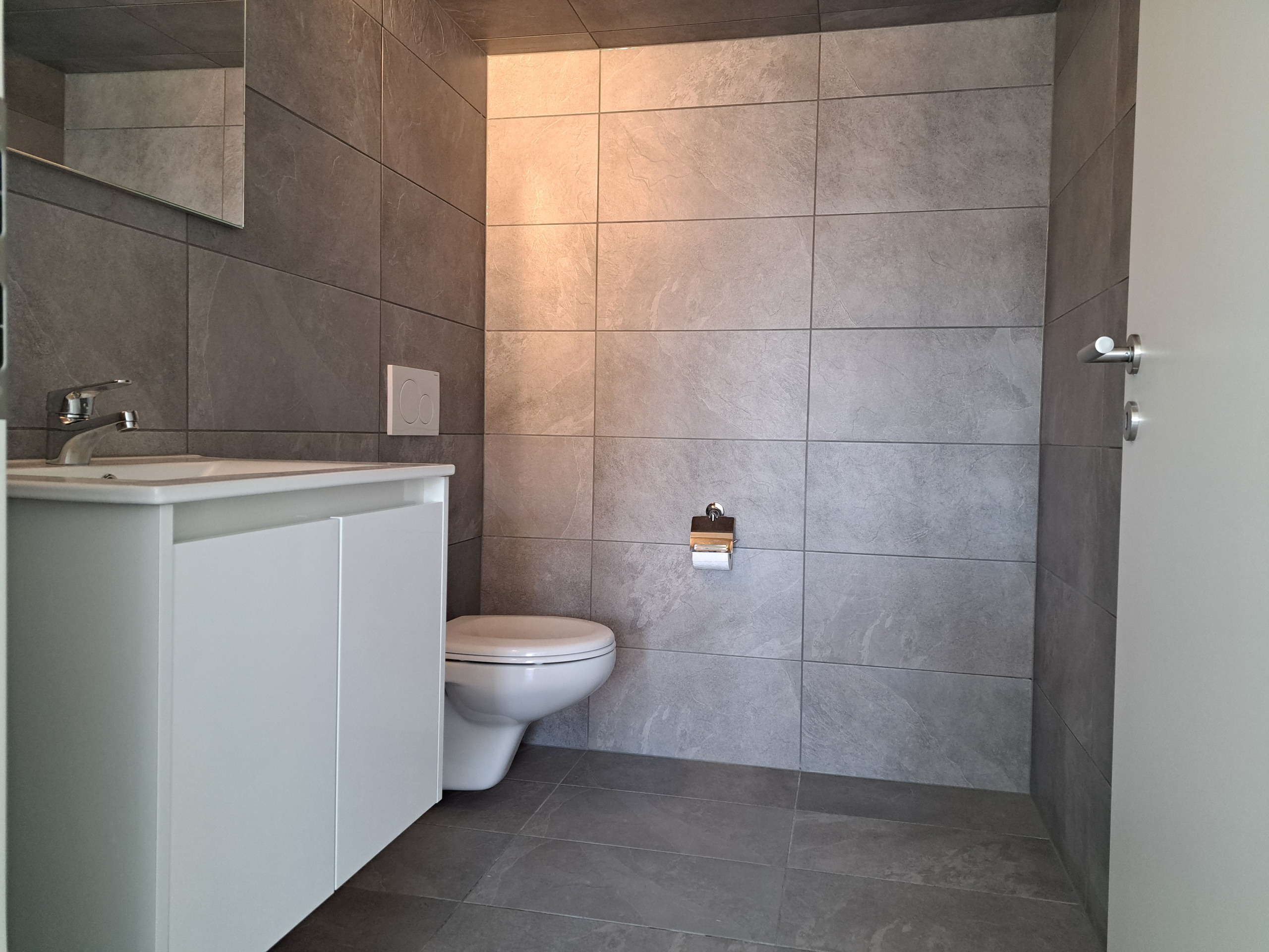 vaste hall d’entrée aménageable selon vos envies, cuisine entièrement agencée et ouverte sur le vaste séjour,1 chambre à coucher avec sa salle de douche à l’italienne/WC ainsi qu’un WC/visiteurs séparé.