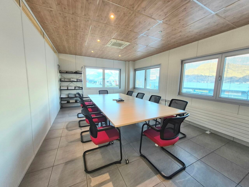 Dans la zone industrielle de Sion, grand bureau bien situé au 1er étage d’une halle industrielle, en bordure de route et à proximité immédiate de la sortie d’autoroute.