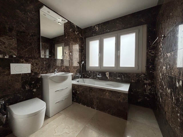 L’appartement se compose d’un hall d’entrée, d’une cuisine bien agencée et bien équipée en marbre,