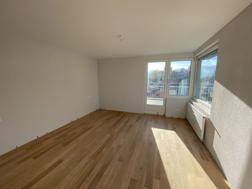 Gerne stellen wir Ihnen die 2.5 Zimmer-Attikawohnung mit wunderschönem Innenausbau und atemberaubender Aussicht auf die umliegende Berglandschaft vor.