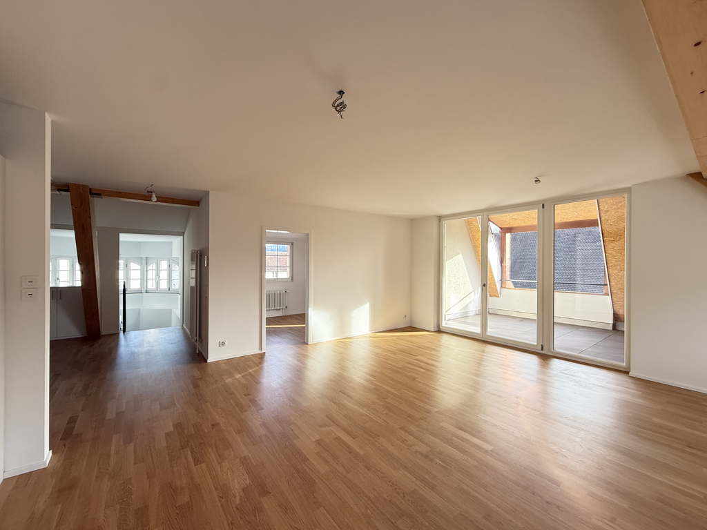 In einer eindrucksvollen Liegenschaft mit historischem Charakter vermieten wir diese aussergewöhnlich grosszügige 4.5-Zimmer-Maisonette-Wohnung, welche sich über das 2. und 3. Obergeschoss erstreckt. Die Wohnung wurde 2025 hochwertig neu gebaut und verbindet edles, modernes Wohnen mit architektonischer Einzigartigkeit.