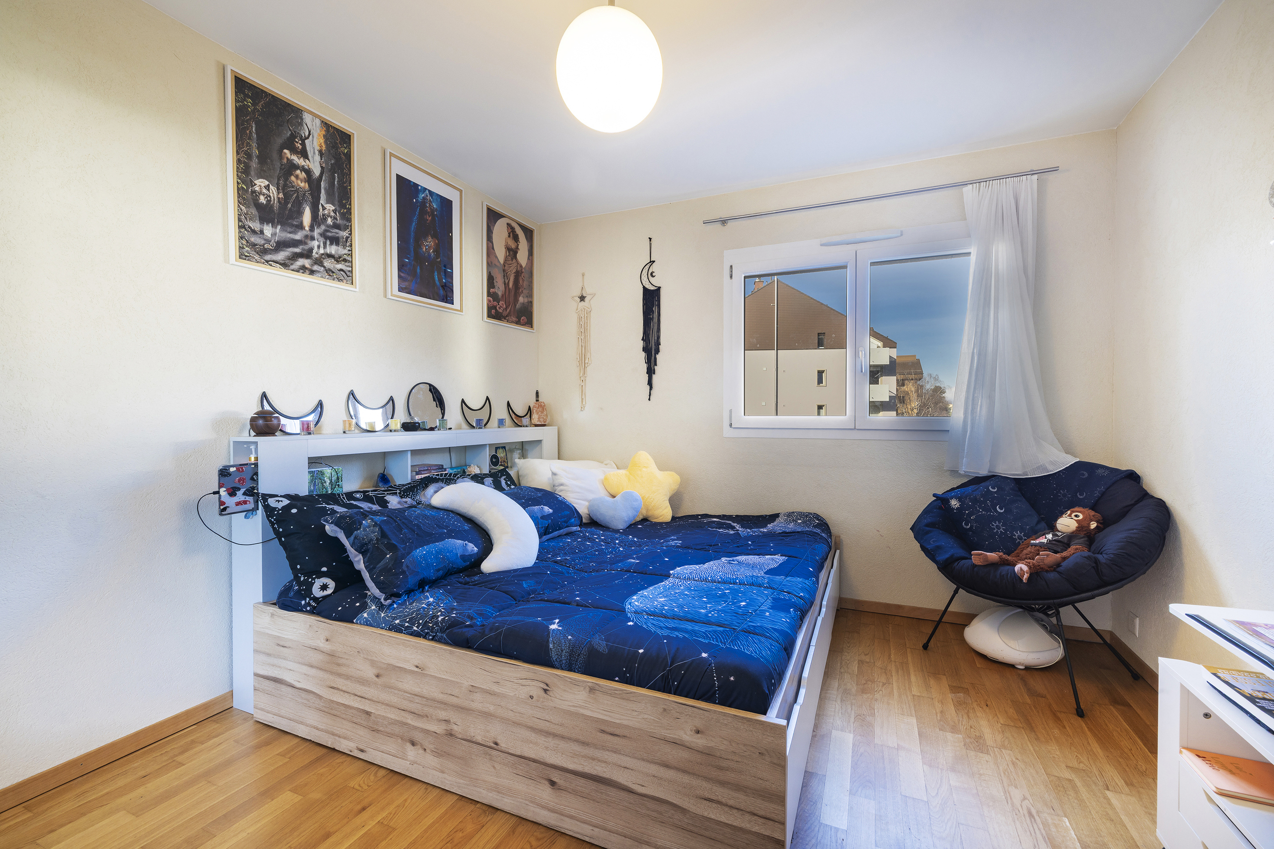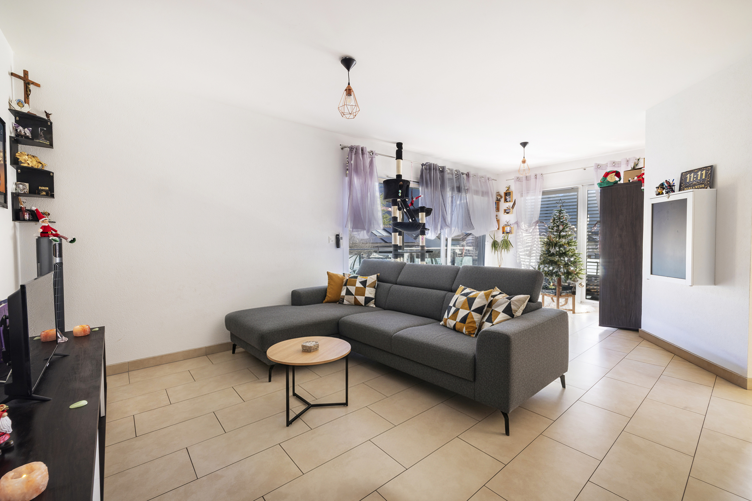 Très bien conçu, ce bien sépare discrètement l’espace de vie et de divertissement de l’espace dédié au sommeil et à la détente.