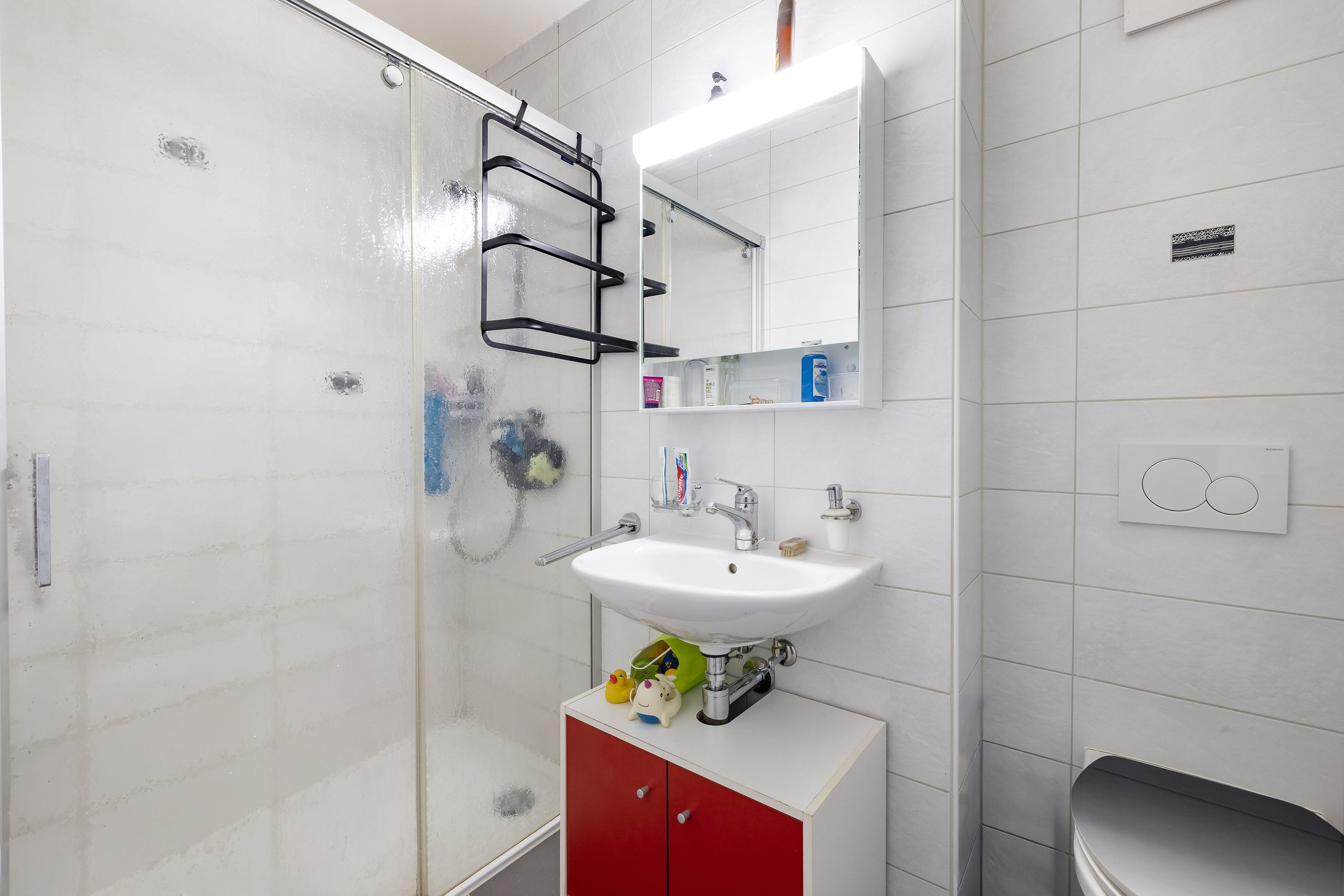 Trois chambres à coucher, une salle de bain avec colonne de lavage, une salle de douche, une cave et une place de parc intérieure (CHF 30’000.– en sus) viennent compléter cette offre alléchante.