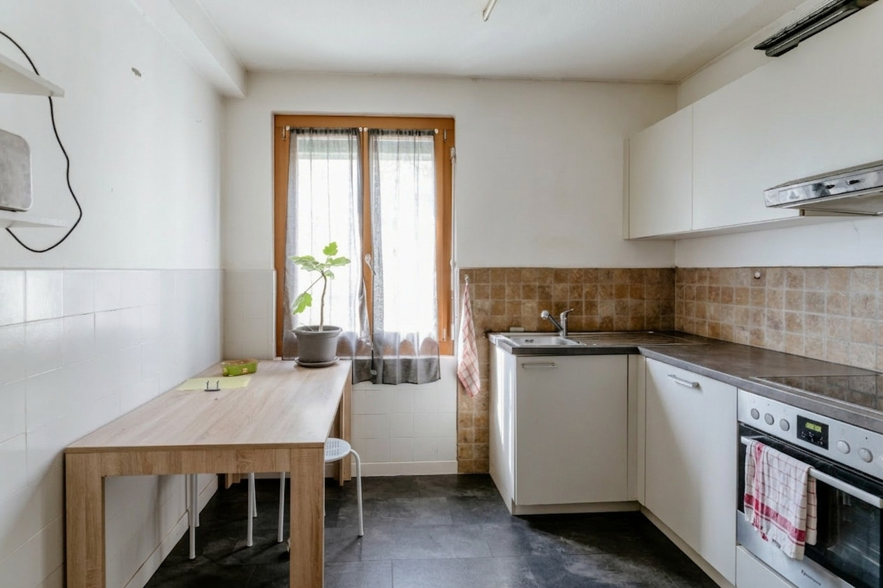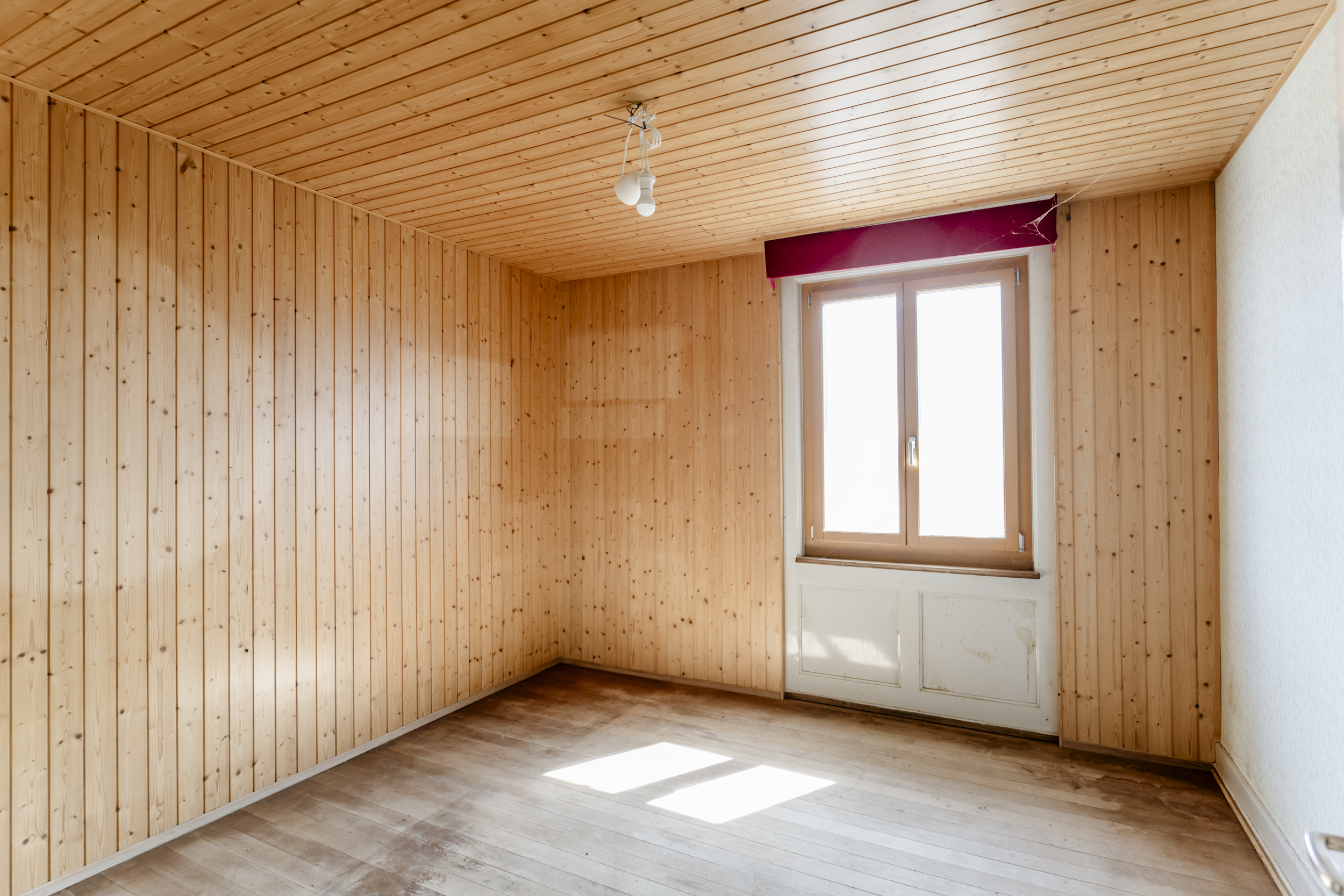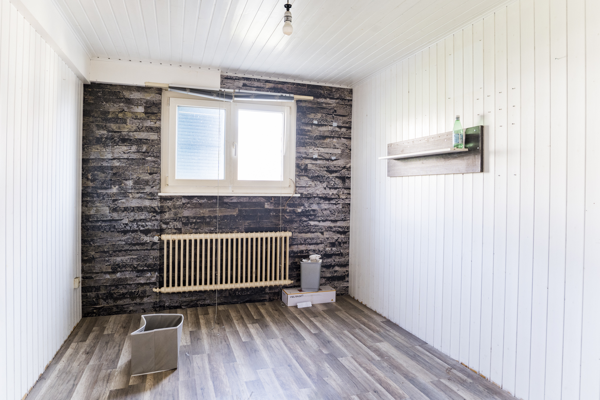 Construite en 1934 et agrandie en 1960, cette maison atypique s’adresse à différents profils. Son histoire particulière mérite d’être racontée ici, afin de mieux cerner sa configuration. Initialement, il s’agissait d’une maison unifamiliale a laquelle, en 1960, on a ajouté une annexe permettant d’accueillir les ouvriers des industries florissantes de la Prévôté. La propriétaire y avait donc aménagé un grand réfectoire, une cuisine et différentes chambres bénéficiant toutes d’une arrivée d’eau, pour loger et nourrir les ouvriers. Cette partie se compose ainsi de 4 chambres à coucher, d’une petite pièce de rangement, d’une grande salle, d’une cuisine et de deux salles de bain.