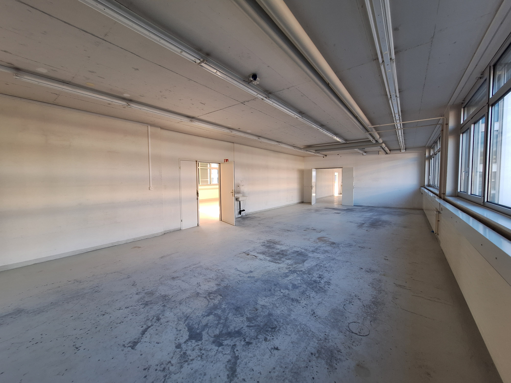 Die Fläche verfügt über einen grossen Produktionsraum sowie diverse abgetrennte Nebenräume, wie z.B. Einzelbüros und kleinere Lagerräume, welche noch vom Vormieter ausgebaut sind und bei Bedarf übernommen werden können.