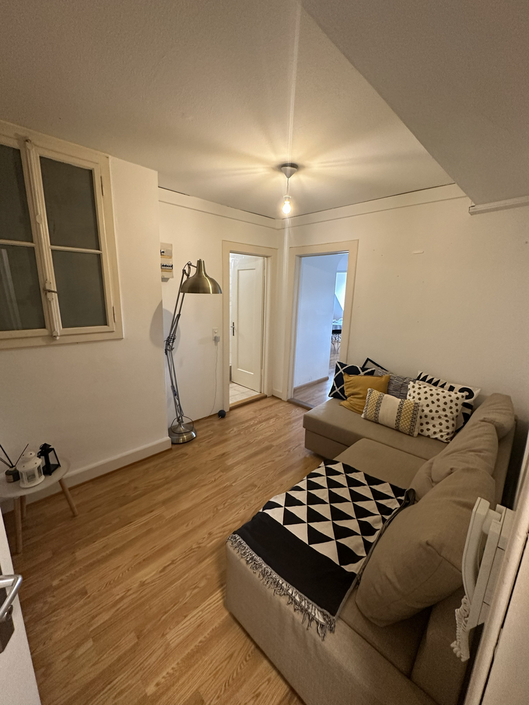 Wir vermieten diese schöne Dachwohnung mit ca. 40 m2 im 5. OG. Mit Dusche/WC und offener Einbauküche. Laminat und Plattenböden. Kein Balkon vorhanden. Die Liegenschaft ist sehr gepflegt und verfügt über einen Lift. Den Schlafbereich kann man mit einer Trennwand zum Wohnbereich abtrennen, dann hat man das 2 Zimmer. Die Küchenfronten werden ersetzt (weiss)