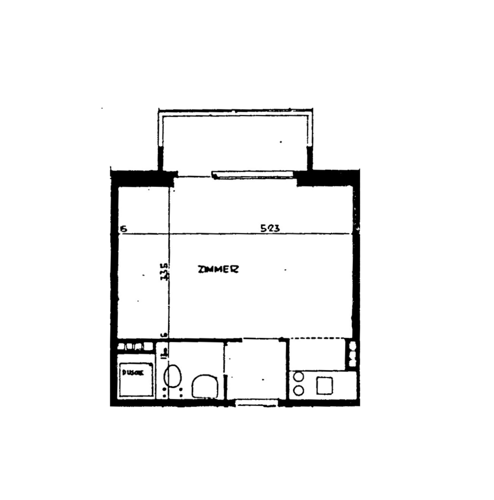 – Zimmer mit Kochnische und Parkettboden