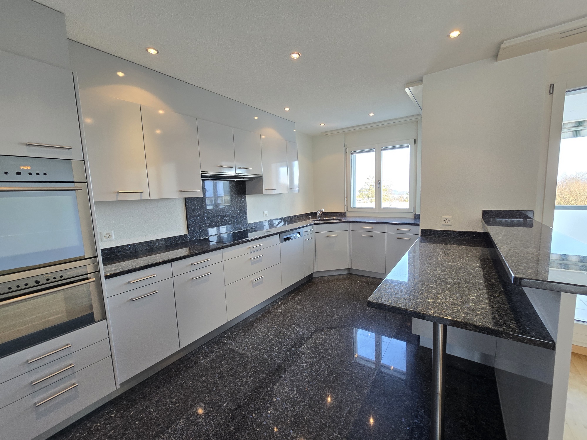 Der Wohn-Essbereich inkl. offene Küche mit Backofen und Steamer bietet mit Rund 65 m² einen komfortablen Lebensmittelpunkt. Ganz einfach wird aus der 3.5-ZWG mit einer Leichtbauwand wieder die ursprüngliche 4.5-ZWM mit 3 abschliessbaren Schlafzimmer.