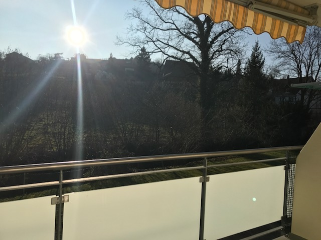 Balkon mit Zugang vom Wohnzimmer und Blick ins Grüne