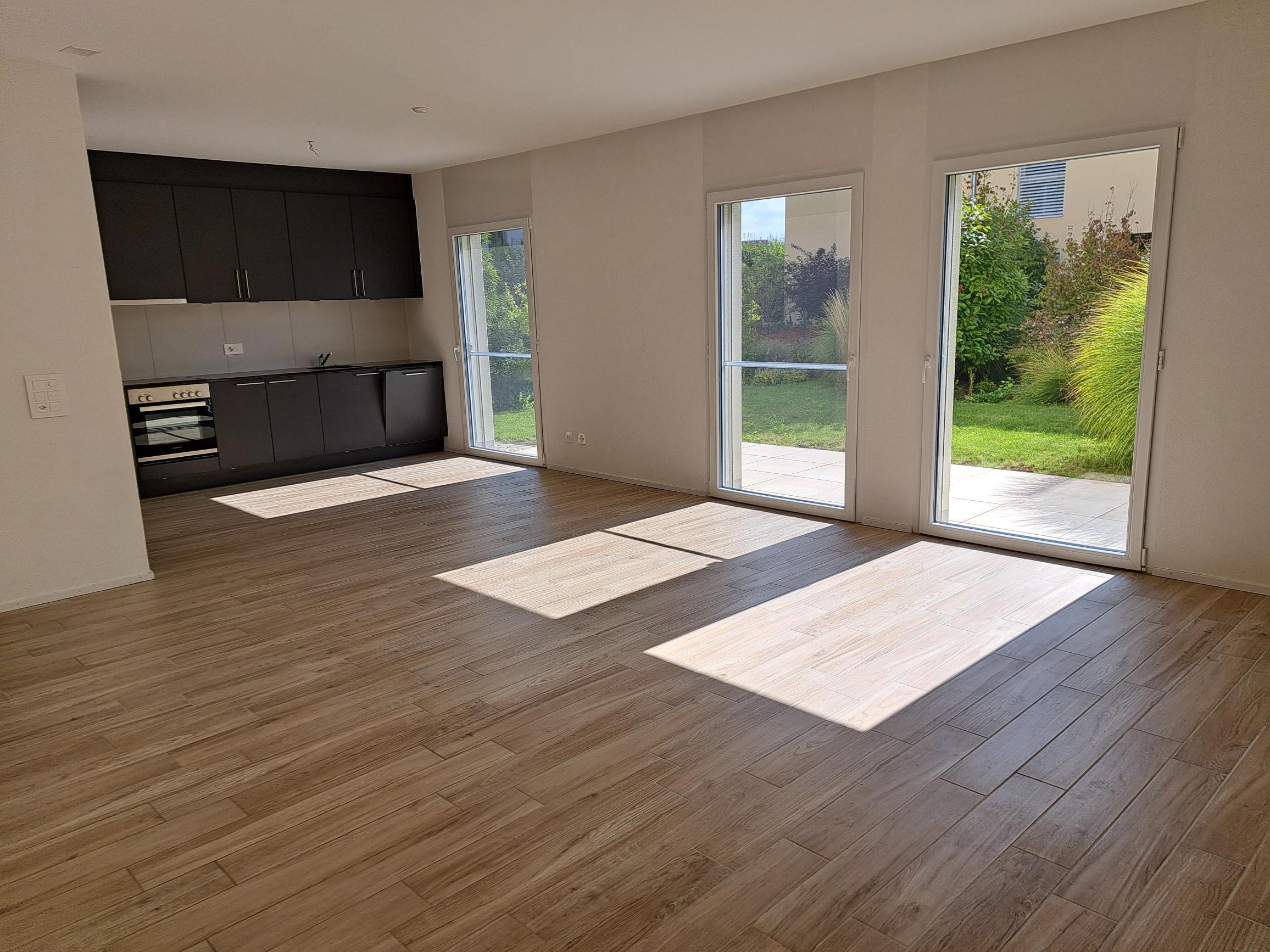 Nous vous proposons à la location un appartement de 2,5 pièces sis au rez-de-chaussée avec terrasse d’un bel immeuble construit en 2018. L’Impasse des Alpes jouit d’un emplacement privilégié : verdure, rue en impasse, piste de pétanque – tout a été prévu pour garantir sérénité, nature et sécurité !