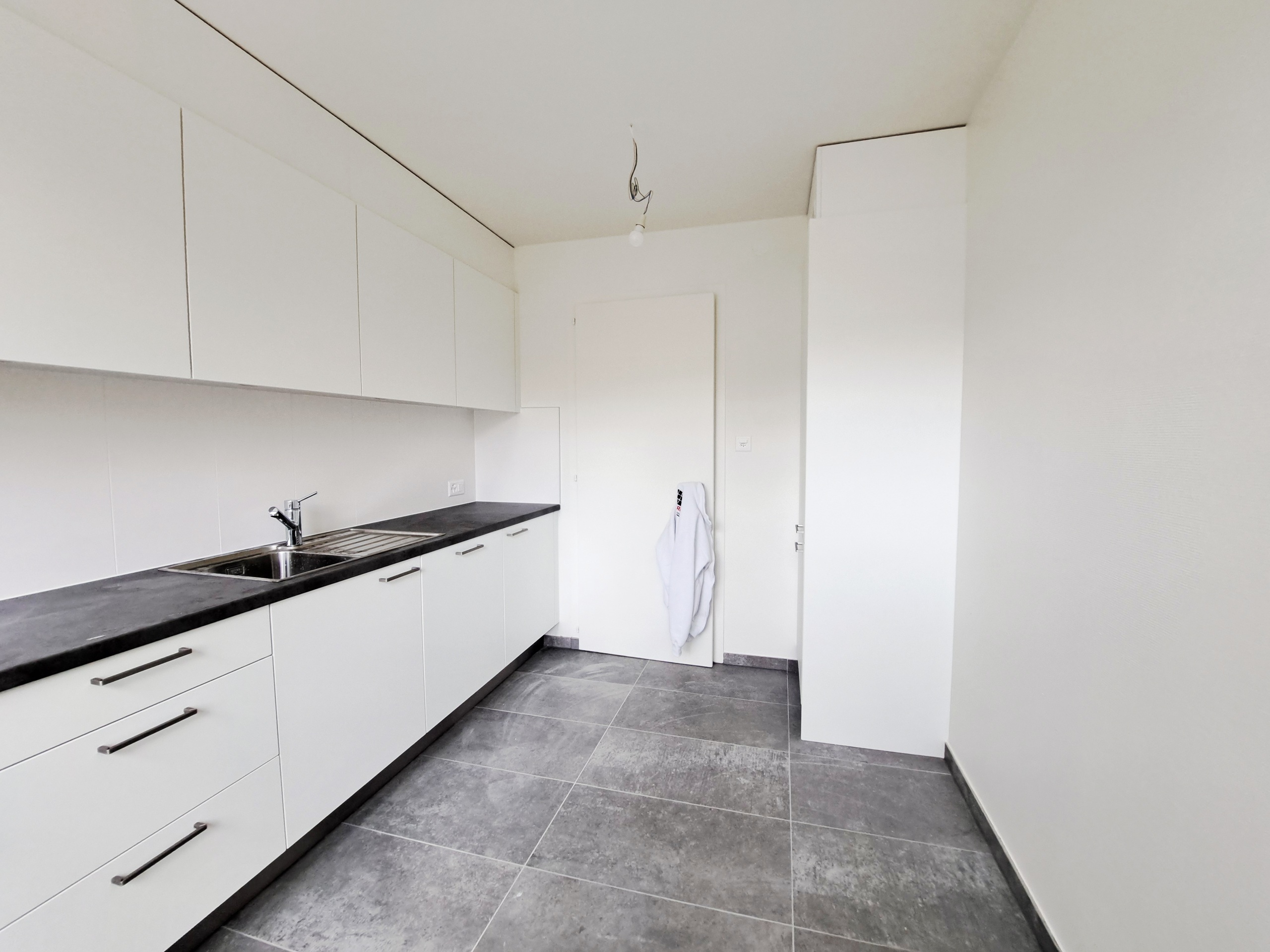 vaste hall d’entrée aménageable selon votre souhait, une cuisine habitable, neuve et entièrement agencée, séjour avec de nombreux rangements, 1 chambre à coucher, 1 salle de bain avec baignoire/lavabo et 1WC séparé.