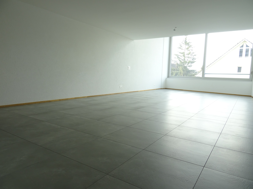 - helles und grosszügiges Wohn-/Esszimmer mit keramischen Bodenplatten und einer fantastischer Fensterfront