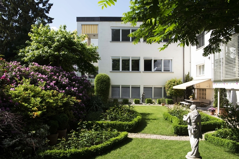 Die Wohnung befindet sich an zentraler und doch ruhiger Lage, da der Wohnbereich gegen das Wohnquartier ausgerichtet ist (30er Zone, Garten).