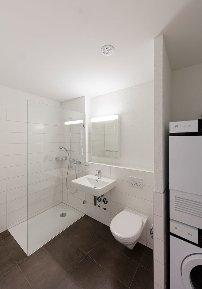Die gesamte Liegenschaft ist hindernisfrei und schwellenlos gebaut und verfügt über einen Lift. Zur Mitbenützung stehen ein Veloraum, ein Trocknungsraum sowie ein Spielplatz zur Verfügung.