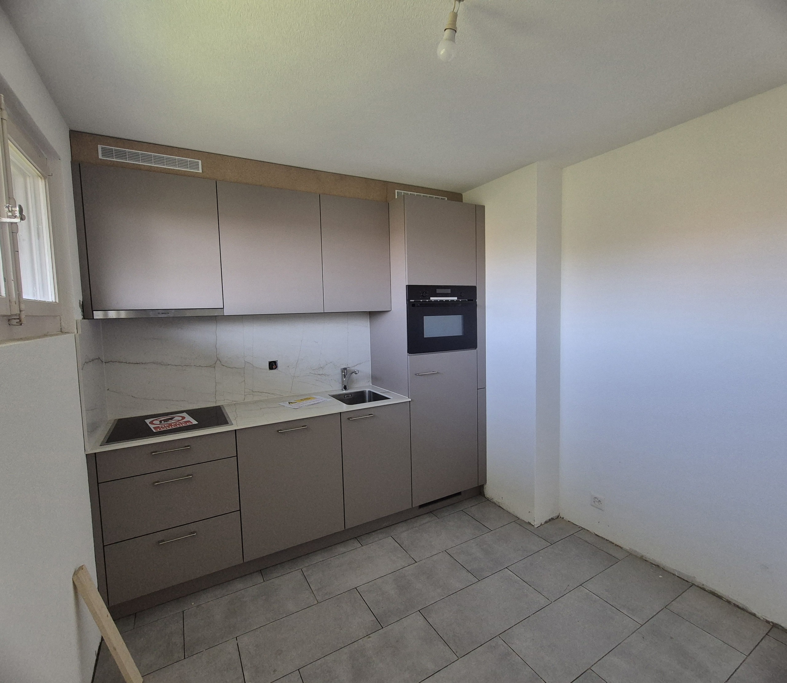 Nous vous proposons à la location, un appartement rénové de 3,5 pièces au rez au centre du village et à deux pas de l’école primaire.