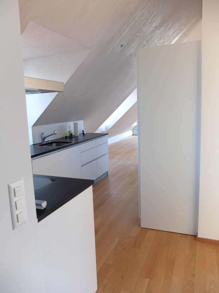 Wir vermieten eine helle und attraktive 2.5 Zimmer-Dachwohnung im 2. Obergeschoss eines modernen, ruhigen 6 Familienhauses in Arlesheim. Die Wohnung überzeugt durch grosszügiges Raumgefühl auf ca. 75 m2 Wohnfläche und hochwertigen Ausbaustandard.