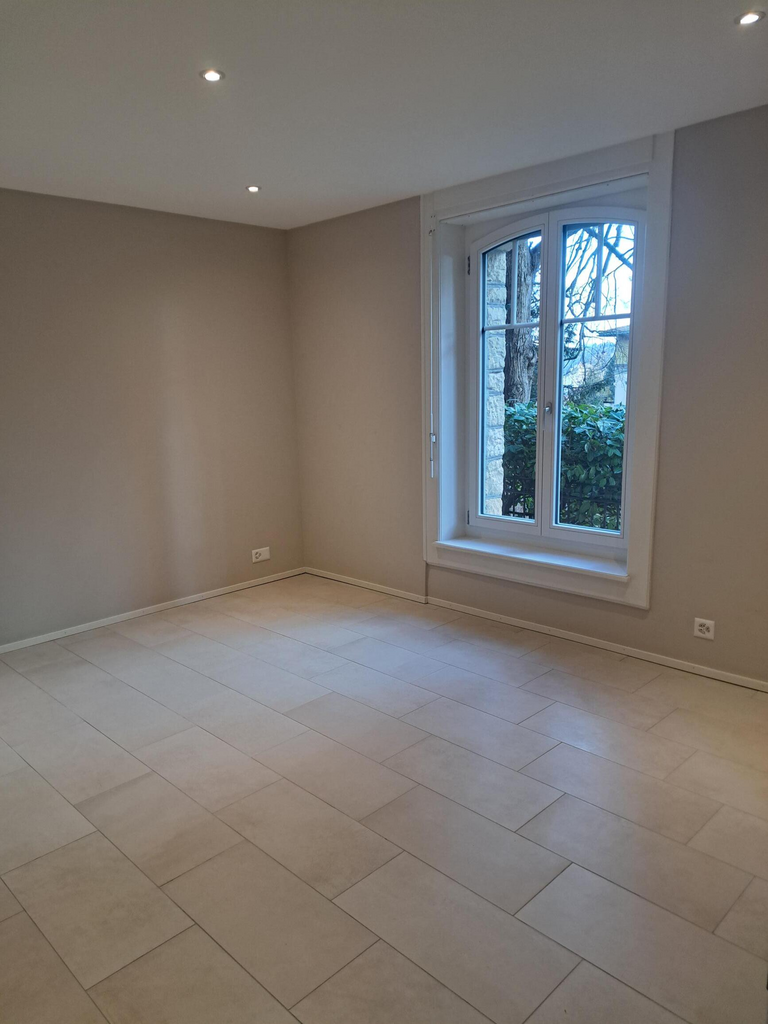 Objet rare dans maison de maître ! Nous vous proposons à la location dans le très joli quartier de Gambach-Quintzet proche des transports et situé à 300m de la gare de Fribourg et du collège de Gambach, un appartement moderne au calme entouré d’un magnifique parc arboré de 3 pièces avec chuaffage au sol, au rez-de-chaussée avec terrasse, comprenant une cuisine agencée avec îlot, un séjour, 2 chambres dont une avec portes coulissantes pouvant servir de bureau, de salle à manger ou prolongement du séjour, une salle de douche, un wc séparé et une cave.
