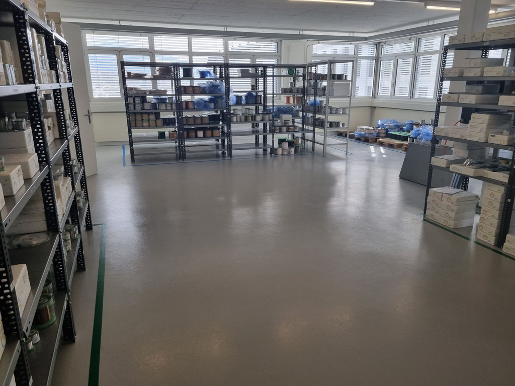 Die Flächen im 1. und 2. OG verfügen über einen grossen Produktionsraum sowie diverse abgetrennte Nebenräume, wie z.B. Einzelbüros und kleinere Lagerräume.