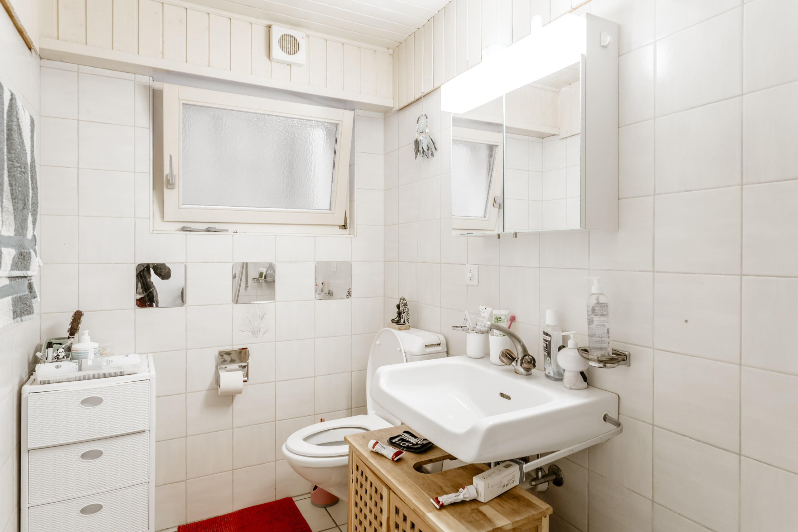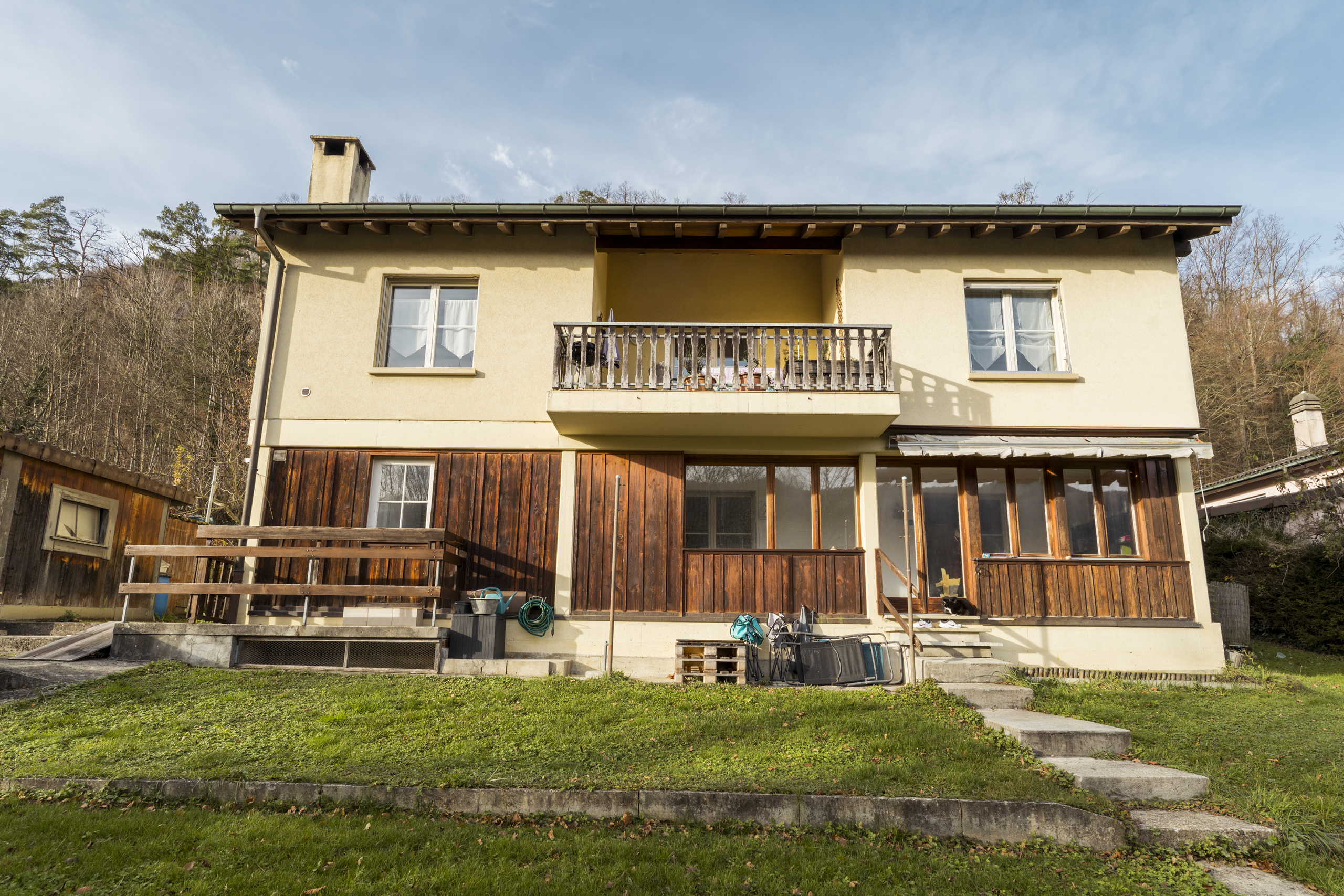 Le rez-de-chaussée inférieur communique partiellement avec l’habitation principale. On y trouve une buanderie / chaufferie avec sortie extérieure, une cave-abri ainsi qu’une petite pièce non chauffée disposant d’une entrée indépendante et d’une douche/WC.