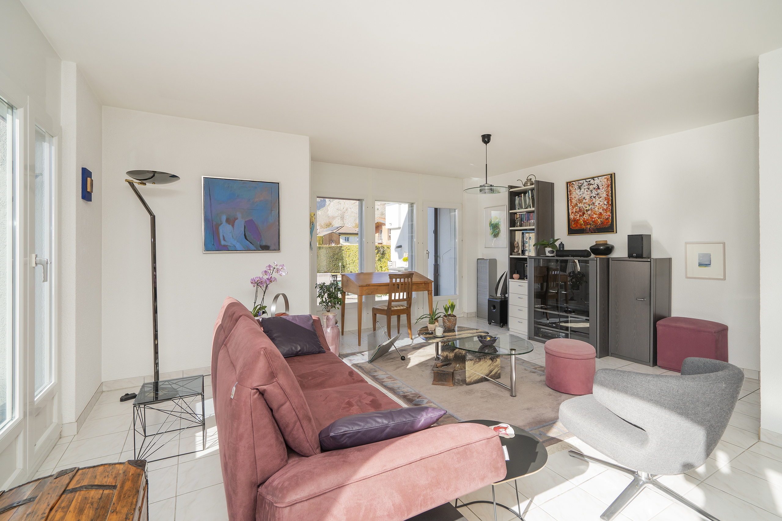 - Un vaste séjour lumineux avec accès direct à la terrasse et au jardin, idéal pour recevoir et partager des moments conviviaux.