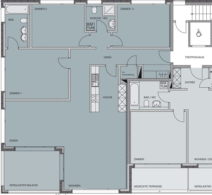 An der Hauptstrasse 100 vermieten wir nach Vereinbarung eine moderne 4.5-Zimmerwohnung mit ca. 130 m2. Das Mietobjekt verfügt über folgenden Ausbaustandard: