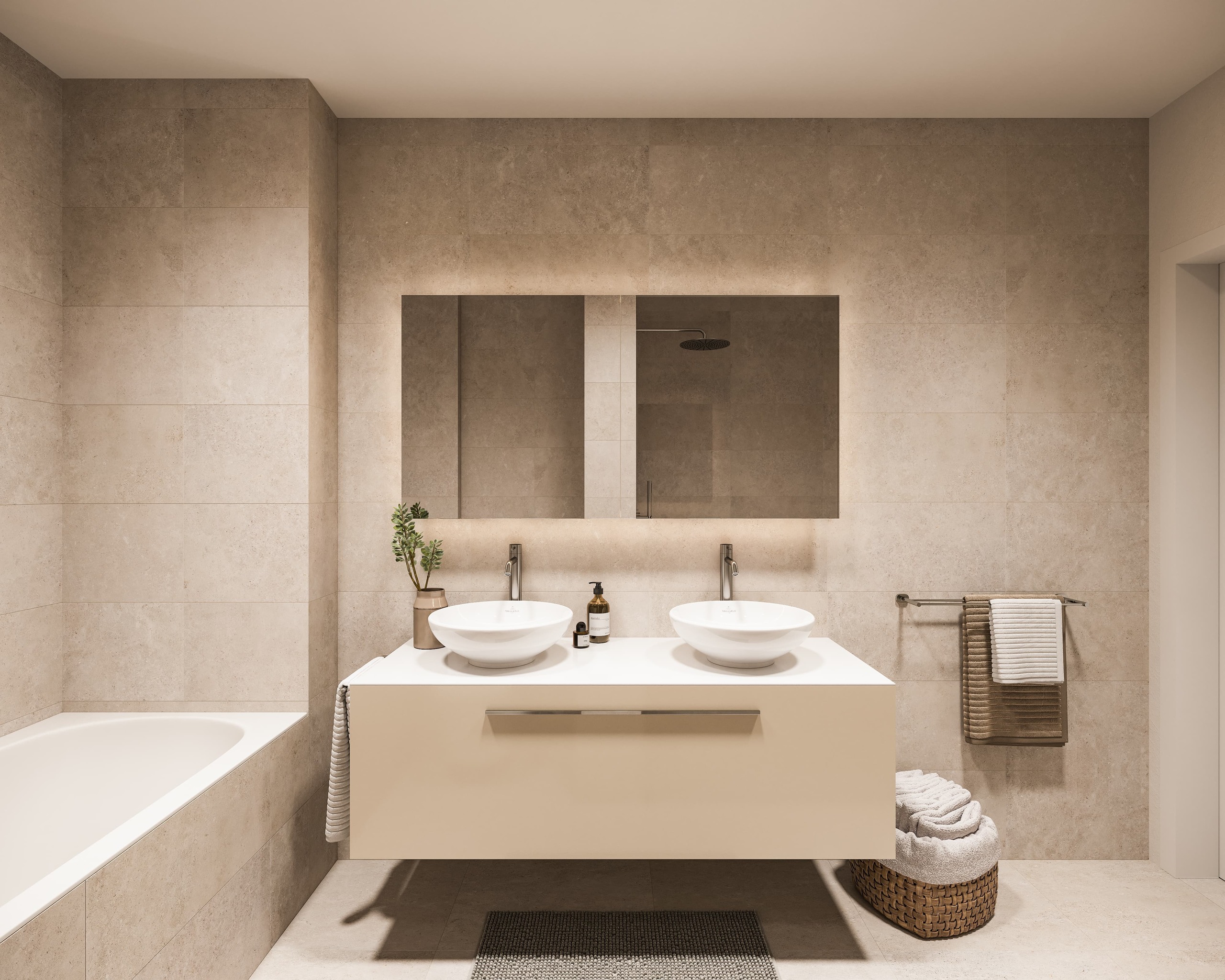 Jede Wohnung verfügt über zwei Bäder, ein separates WC sowie ein Reduit mit eigenem Waschturm.