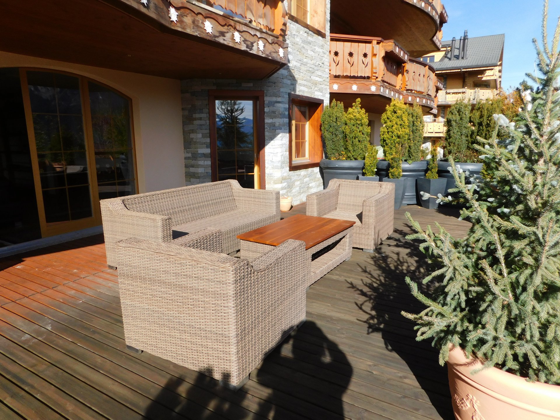 Jardin-terrasse de 220 m2. Place de parc intérieure.