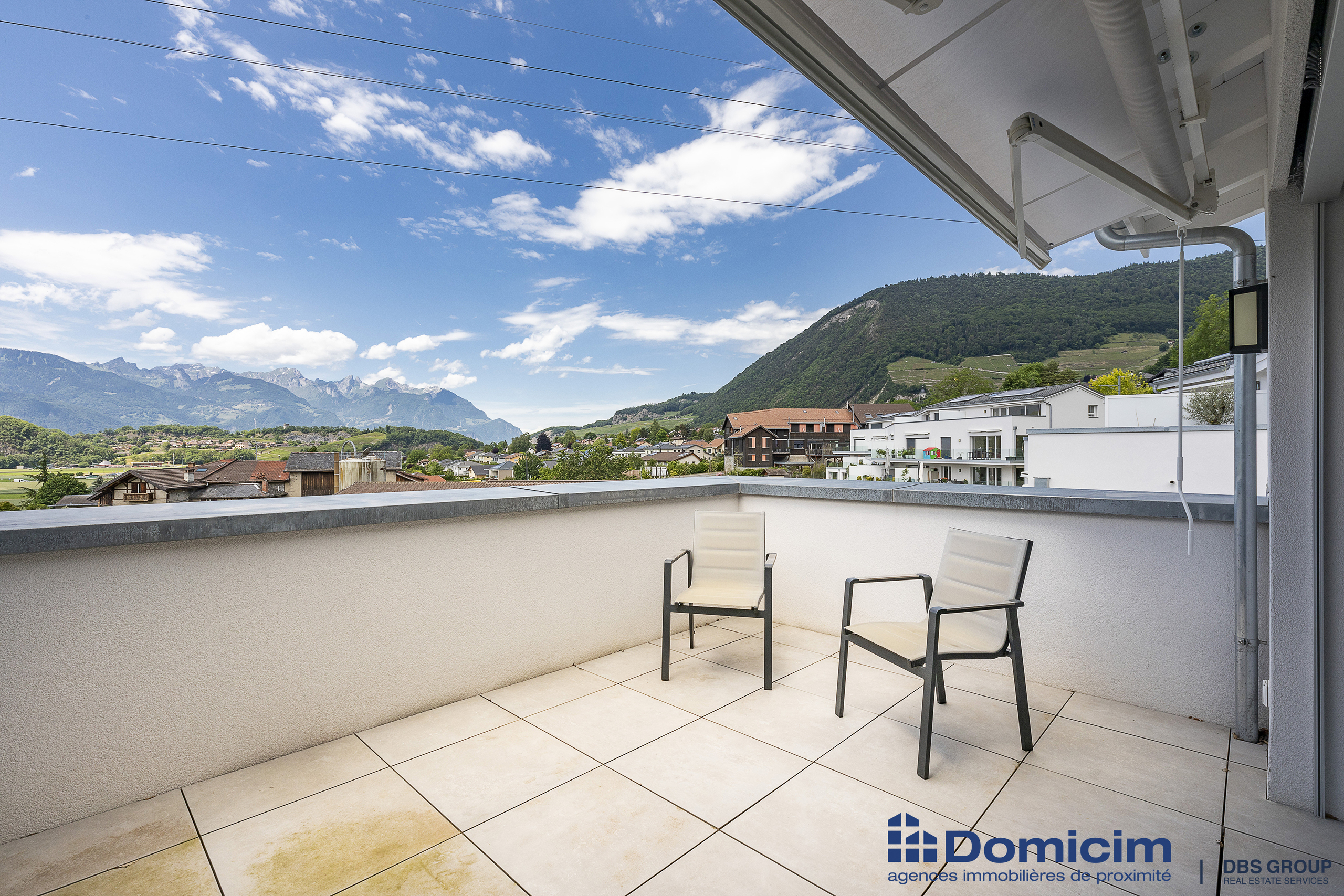 À l’architecture contemporaine d’une résidence PPE récente (2021) (CECB de note B) il est orienté Sud/Ouest et offre une vue dominante et sans vis-à-vis sur le Massif des Dents-du-Midi, les sommets alentours et la plaine du Rhône.