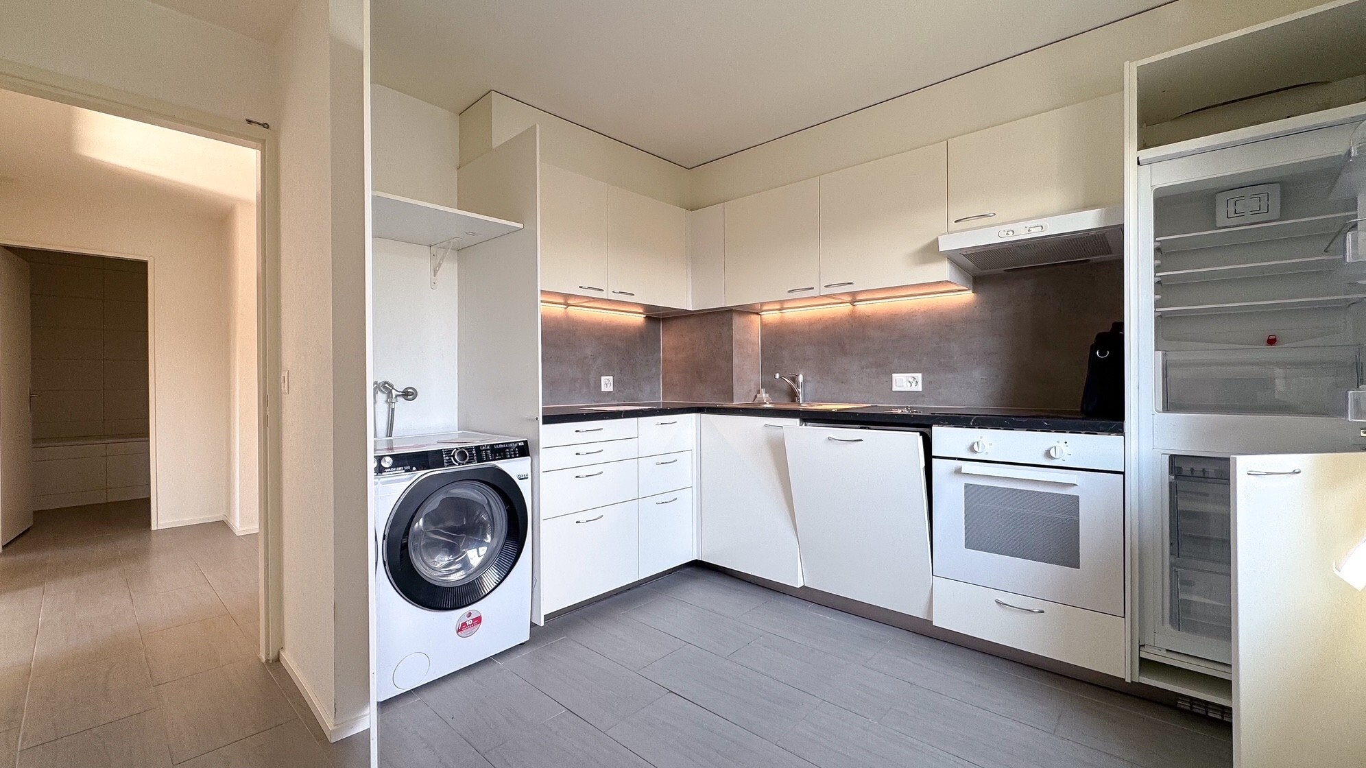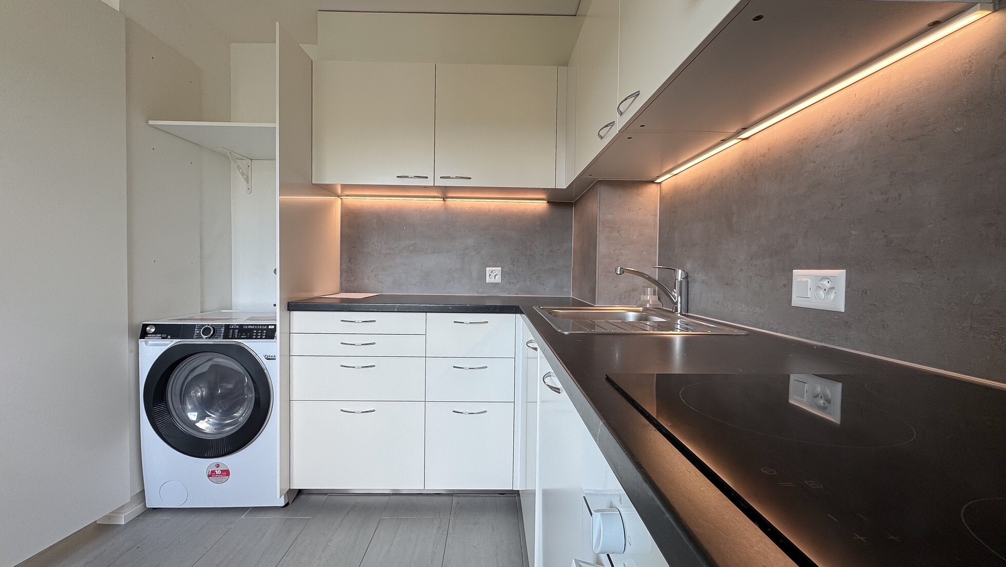 - Cuisine équipée avec emplacement pour colonne de lave-linge/sèche-linge.
