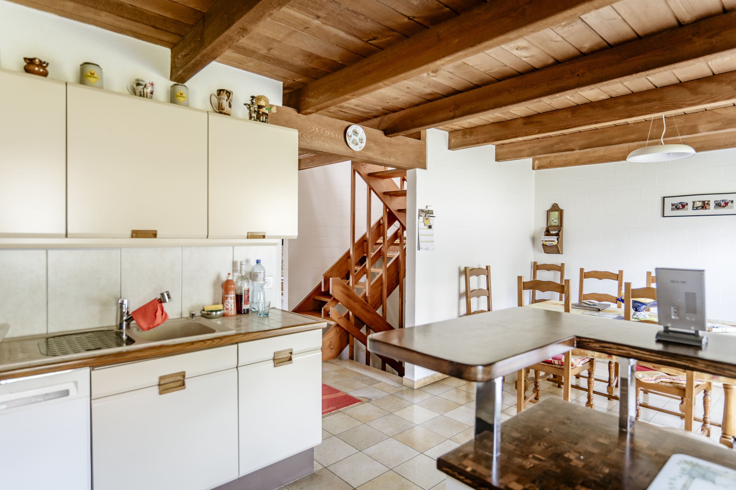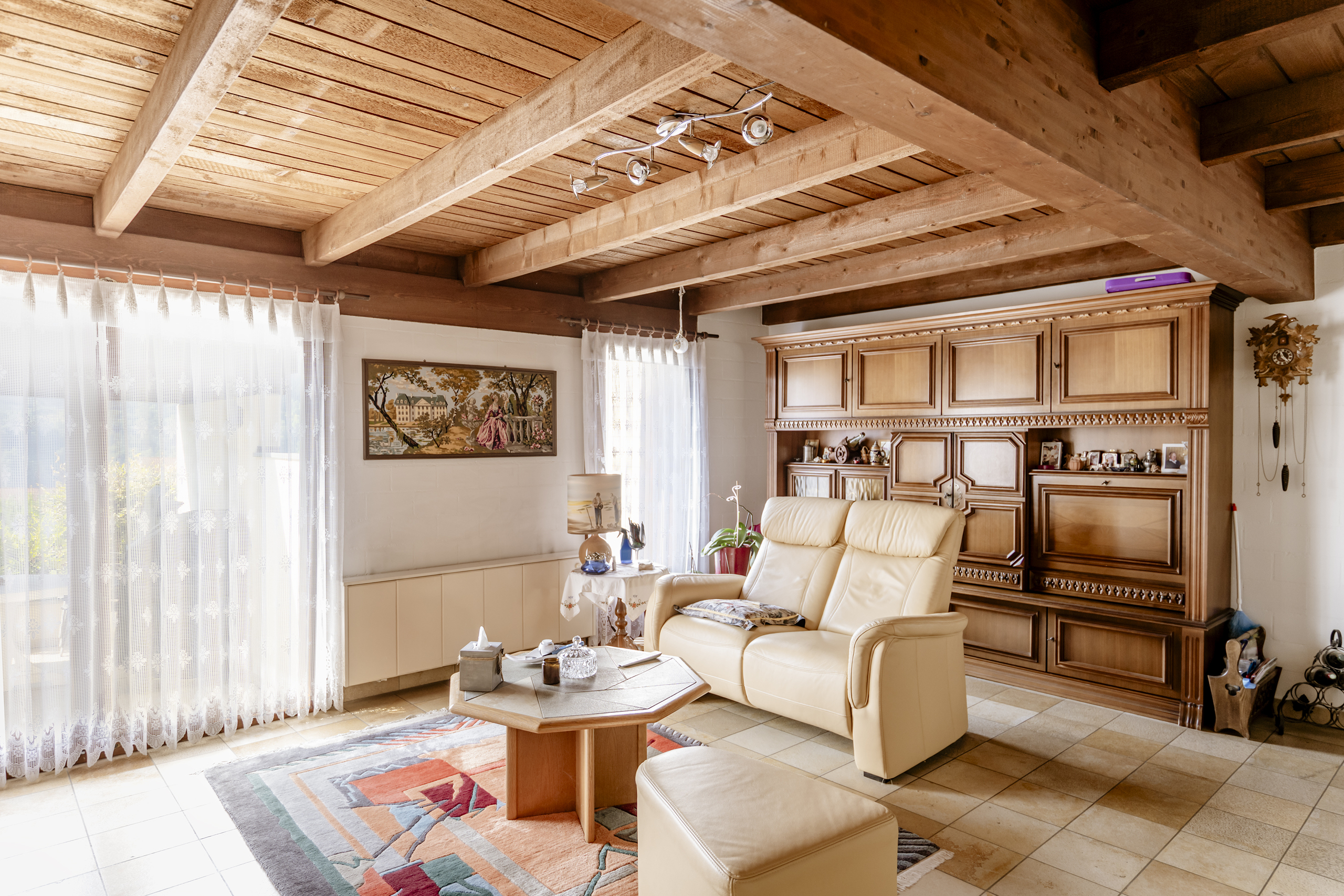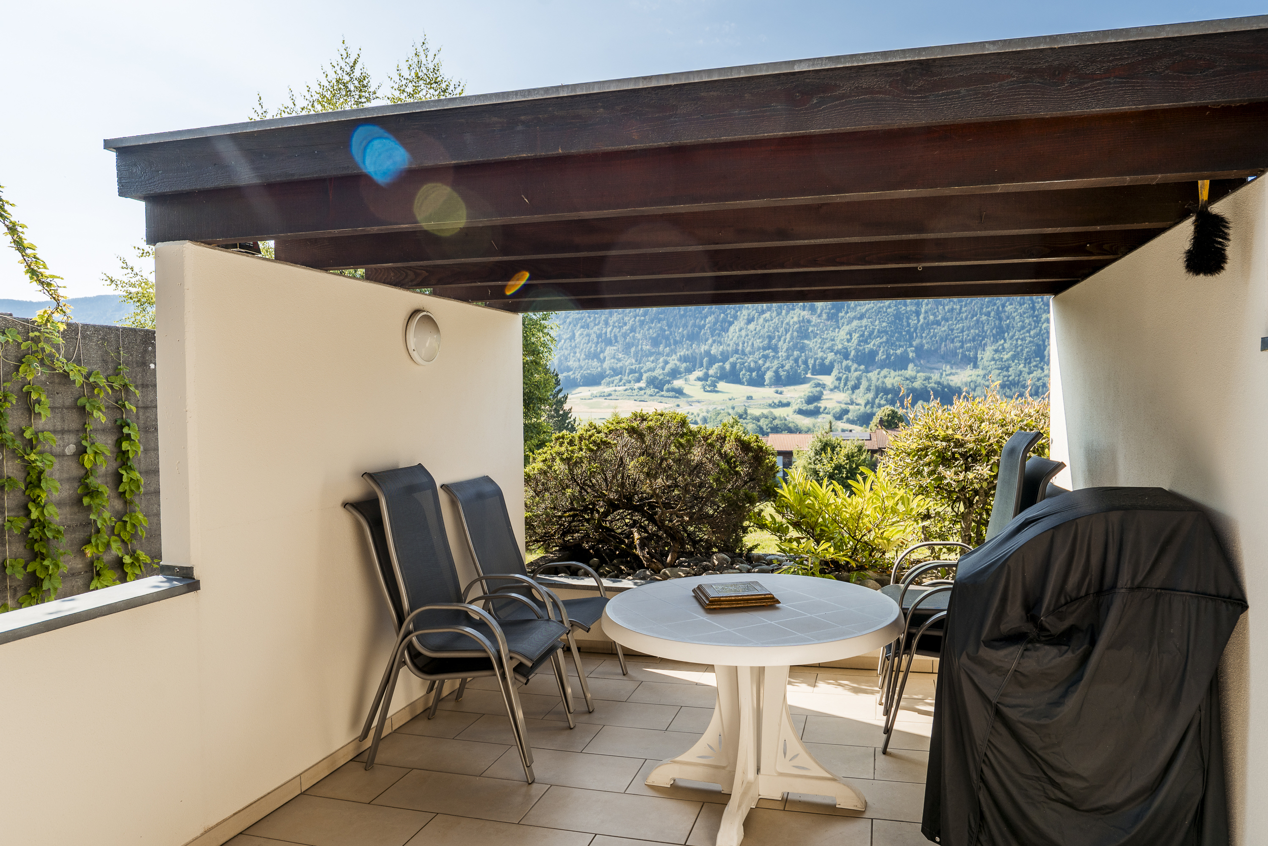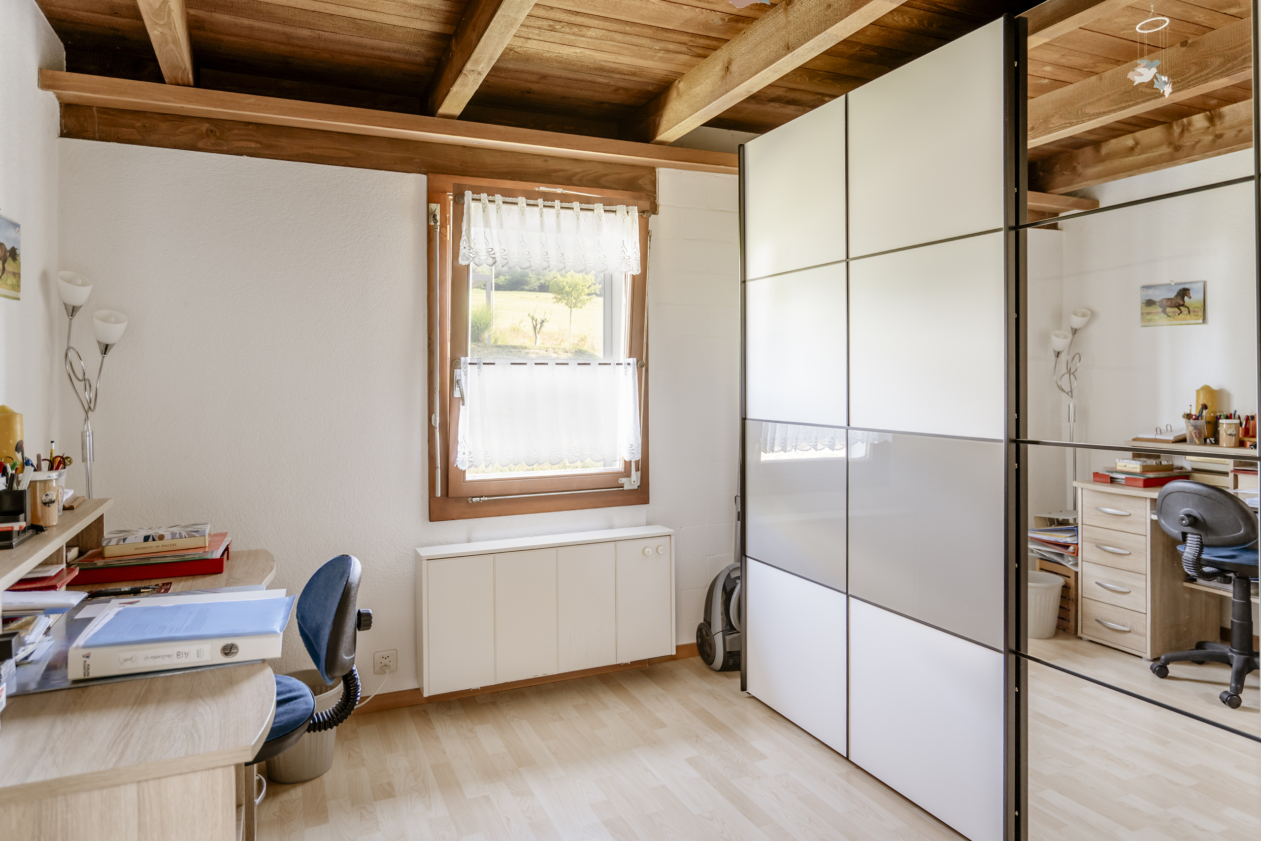 La partie „jour“ occupe le 1er niveau. La cuisine et l’espace repas forment une seule pièce agréable et chaleureuse donnant accès au jardin et à la terrasse nord. Le salon se trouve, quant à lui, côté sud. Agrémenté d’une cheminée, il s’ouvre sur une magnifique terrasse partiellement couverte. La vue sur la montagne de Graitery est saisissante et sans vis-à-vis ! Il est à noter qu’un WC visiteurs complète ce niveau.
