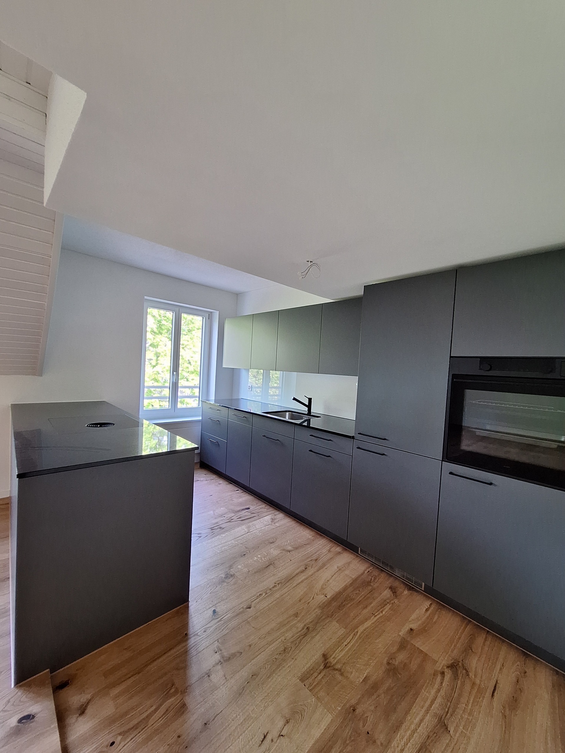 - Design-Küche mit Kochinsel: Grosszügig, offen und perfekt für gesellige Kochabende oder stilvolle Dinner.