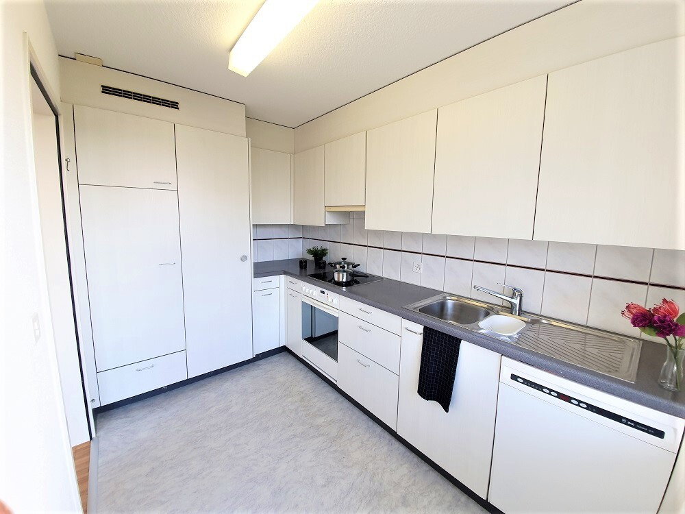 - geräumige Küche mit viel Stauraum, Kühlschrank, Backofen, Glaskeramikkochfeld